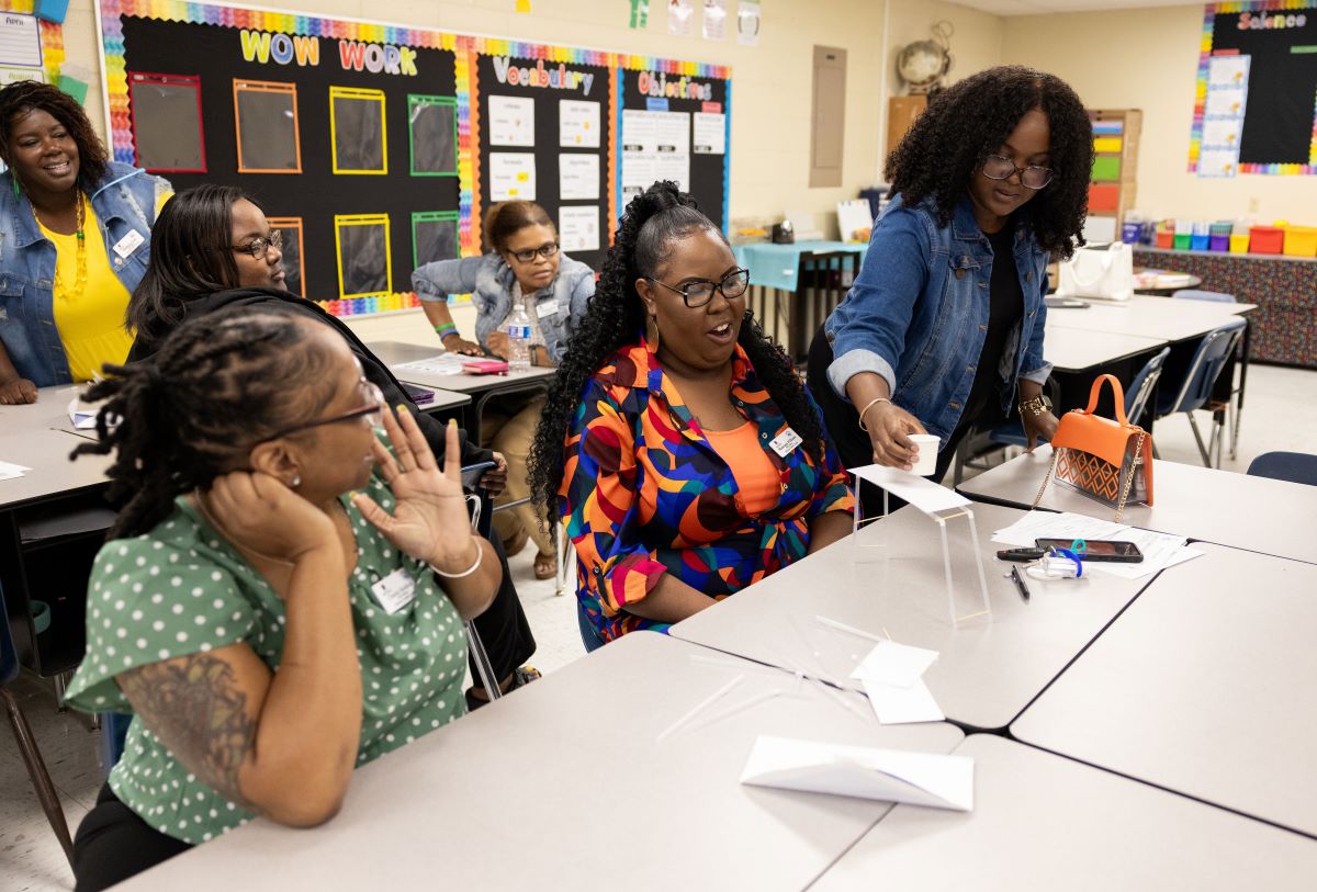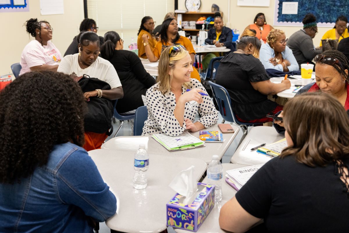 Arkansas Teacher Corps fellows and staff met at Chicot Elementary in Little Rock on Saturday, August 24 for the first All Corps professional development of the 2024-25 year. We had so much fun while learning new skills, developing our content knowledge, and growing as professionals. The day began with a special icebreaker where fellows shared pictures on their phones that demonstrated something that defined their summer, something tasty they ate, and something that brings them joy. Fellows completed additional team-building activities in smaller groups based on geographic regions, including a competition to build a free-standing bridge that could hold a cup of water out of materials like plastic straws and aluminum foil. The morning ended with a session on MTSS and tier 2 behavioral interventions, providing fellows an opportunity to use the Student Intervention Matching Form provided by DESE’s behavior support specialists to develop tier 2 interventions for specific students.