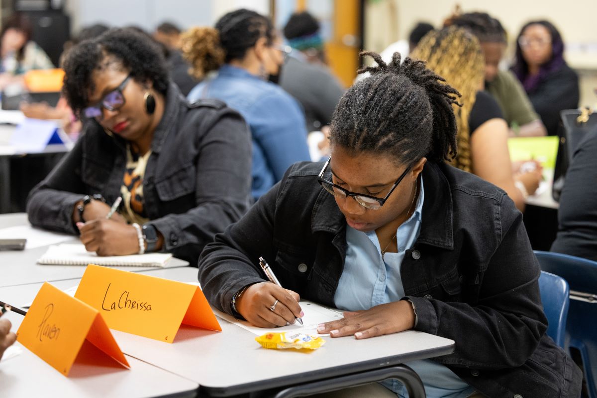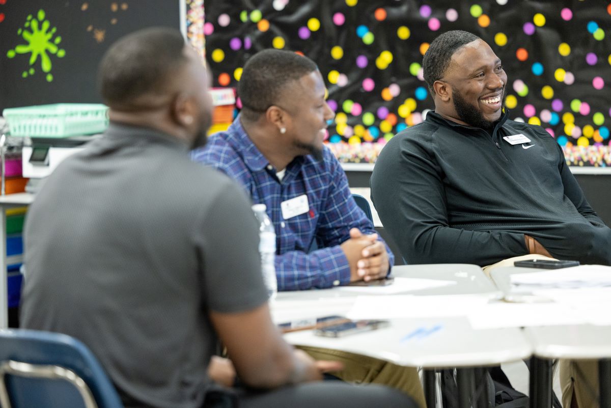 After lunch catered by Three Fold Dumplings. fellows met in their content-specific groups to discuss various instructional planning topics in-depth, such as vertical alignment of math standards, engaging phonics strategies for elementary students, reciprocal teaching strategies for ELA instruction, professional learning opportunities for art instructors, and student engagement strategies for the CTE classroom. The final session allowed fellows time to reflect on and plan for building relationships with students, including learning more about students with whom they have struggled to connect previously. The day then concluded with announcements, celebrations of those who had passed Praxis tests, and several raffle prizes for things like being on time, wearing your ATC nametag, and completing the day’s “getting to know you” bingo card (itself a strategy to encourage fellows to get to know one another better). Overall, on the end of day survey, 99% of fellows said that the day’s PD gave them skills and/or strategies that they will begin to use in their classroom immediately.